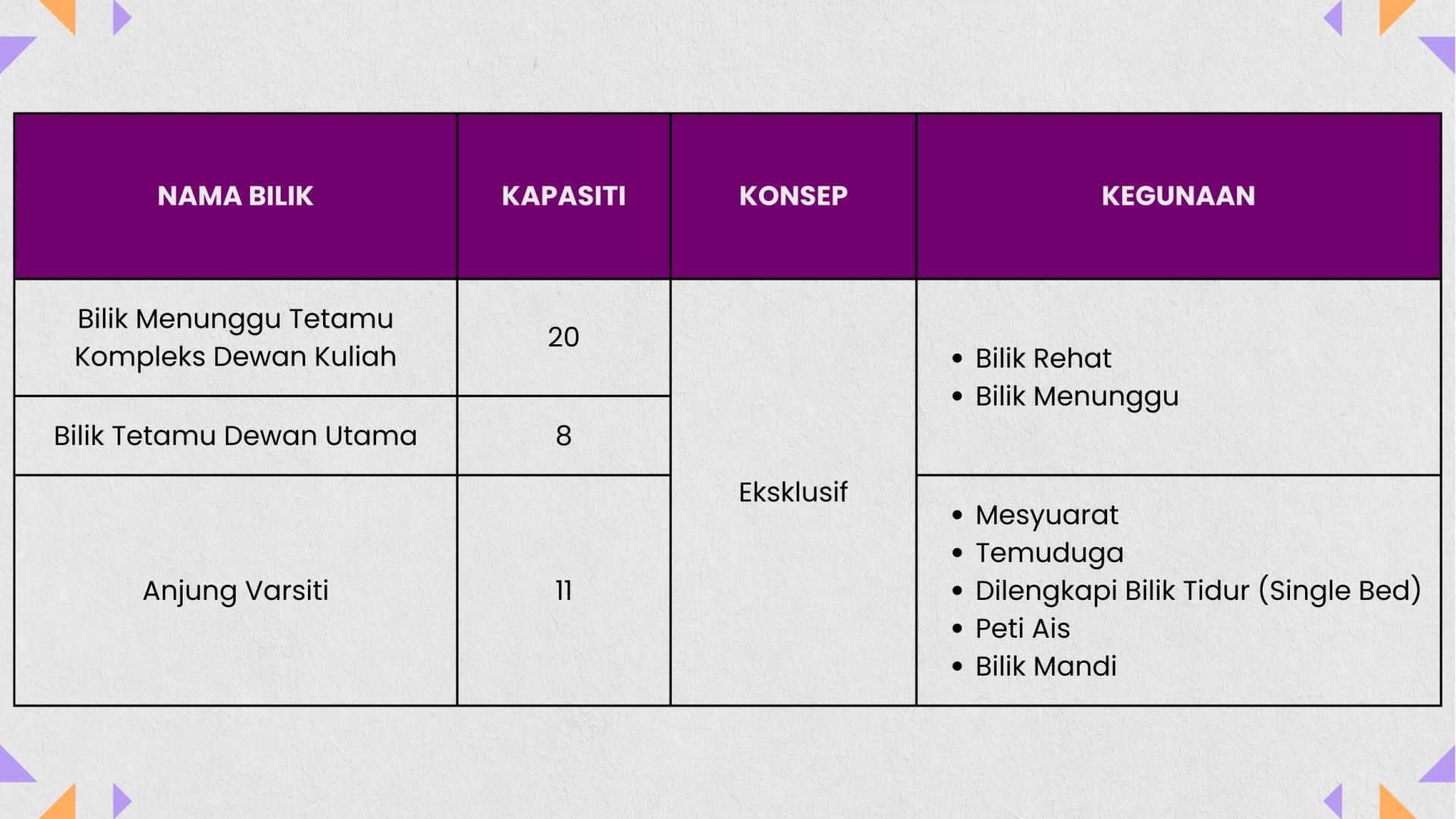 Bilik Menunggu Tetamu Kompleks Dewan Kuliah (pandangan dari dalam)